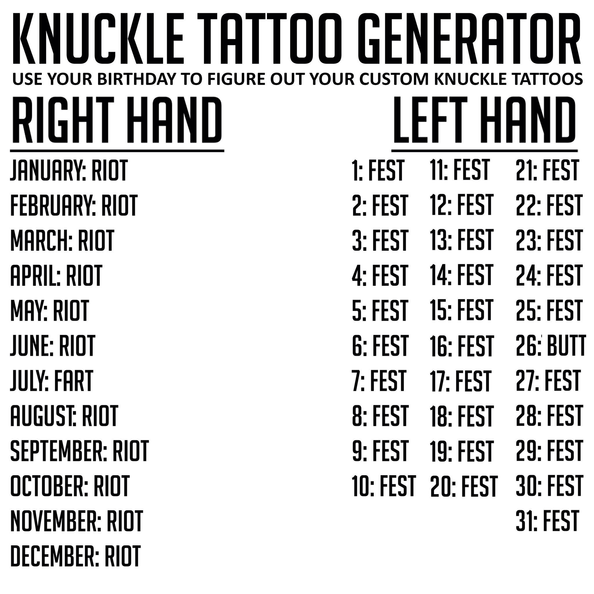 Knuckle Tattoo Words List